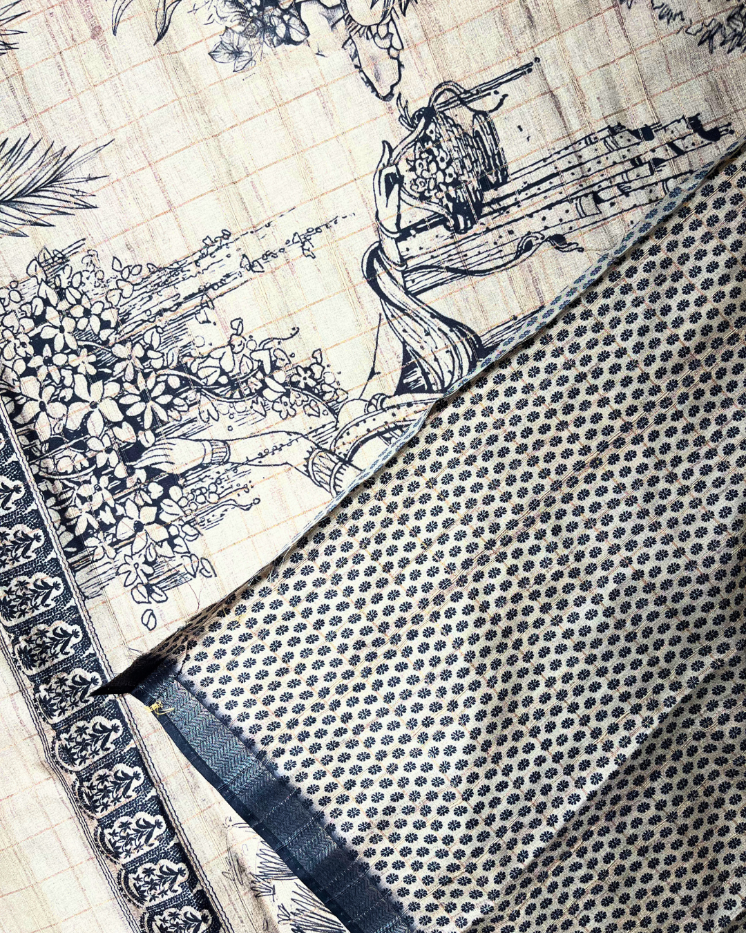 Beige Khadi Block Print Saree – Heritage Handloom Artistry