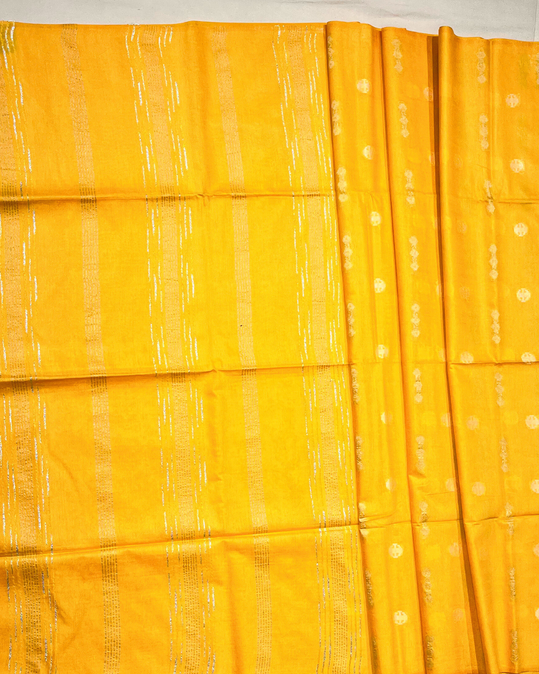 Vibrant bright yellow Bhagalpuri silk saree with rich golden zari border and lustrous drape—perfect for weddings, festive occasions, and daytime...