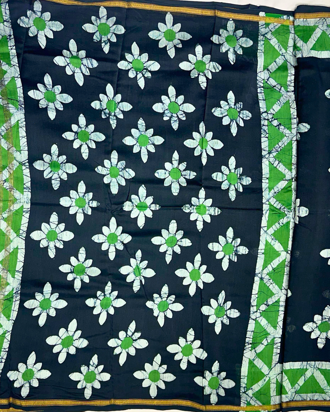 Handcrafted Chanderi Cotton Saree with Batik print and elegant border, ideal for festive, casual, and office wear.
