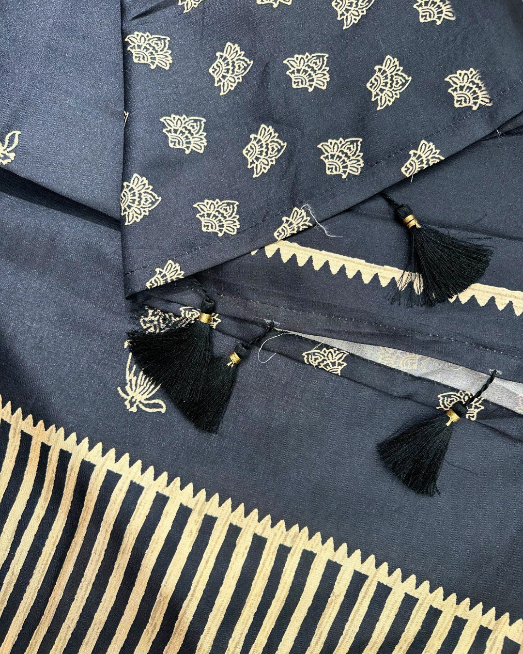 Elegant Black Khadi Printed Saree – Traditional Motifs & Bold Accents