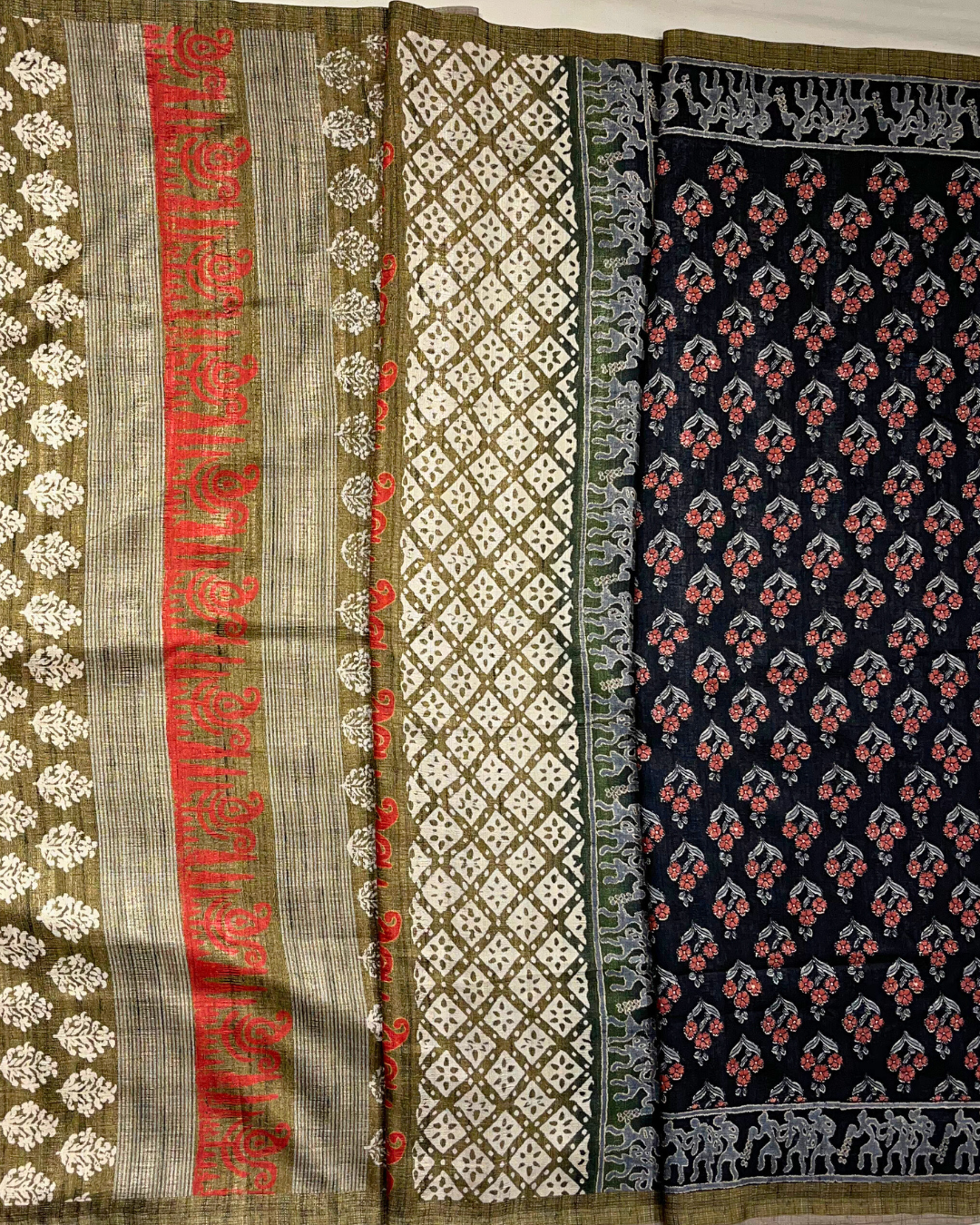 Khadi Printed Saree with Ajrakh Motifs – Traditional Handloom Elegance
