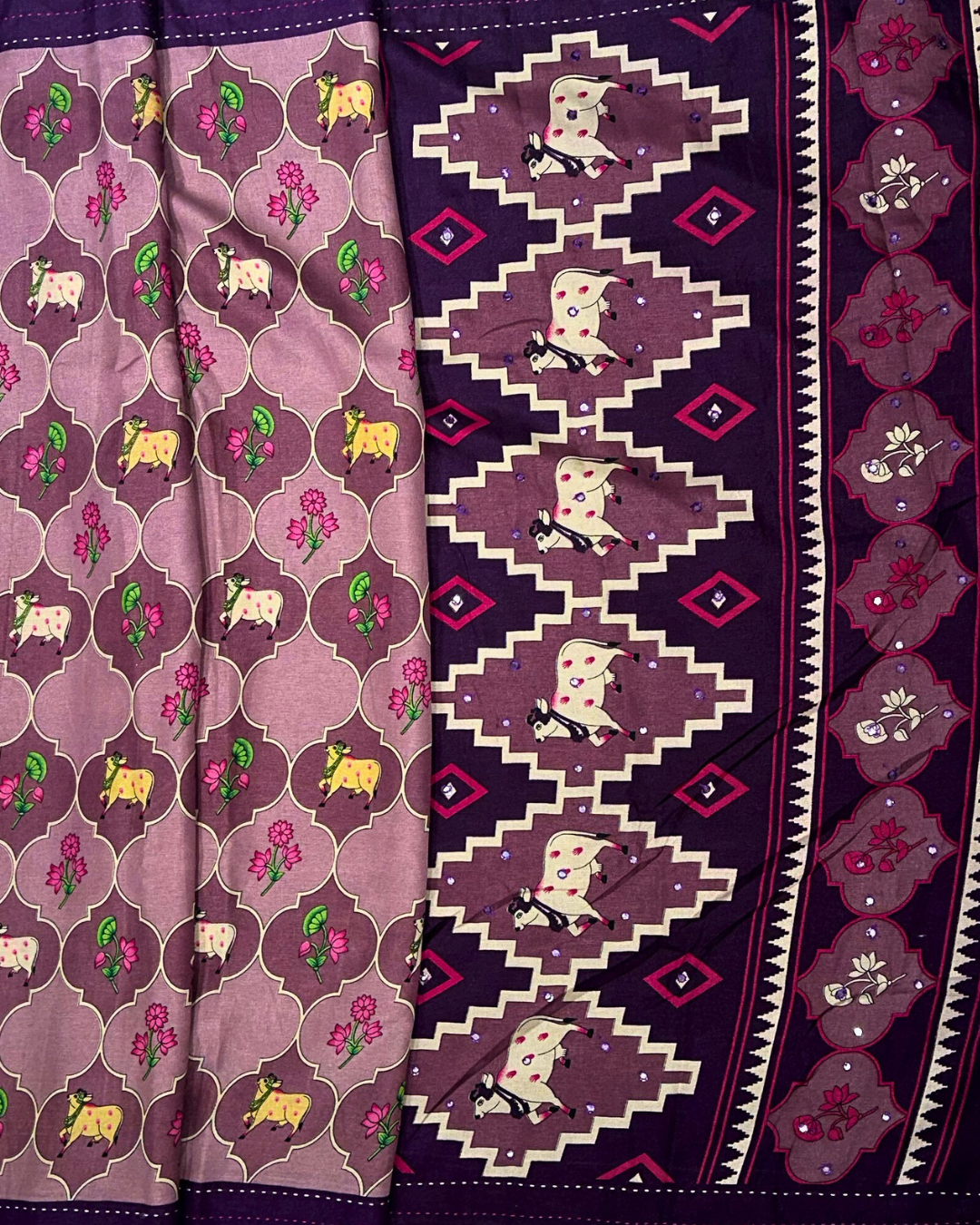 Woven with the richness of Munga silk and adorned with intricate Pichwai prints, this saree is a tribute to heritage...